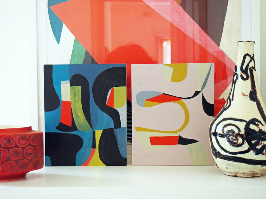 We recently bought a new camera, and while we haven't had as much time to fully explore its capabilities, I already love how easy it is to use, and the quality of interior shots. I think we are going to be best friends forever! Here's a photo I took this morning of two paintings I've been working on - in progress actually, as they are not quite finished. Nearly done though!