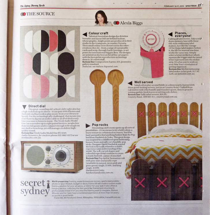 We were chuffed when contacted by Alexia Biggs from the Sydney Morning Herald about featuring our print Composition I in the Spectrum edition of the newspaper. The feature ran on the Saturday the 16th of February. We would have shared it sooner, but we had to wait for it to arrive in the mail, all the way from Sydney. We really appreciate the support, and absolutely love the feature.