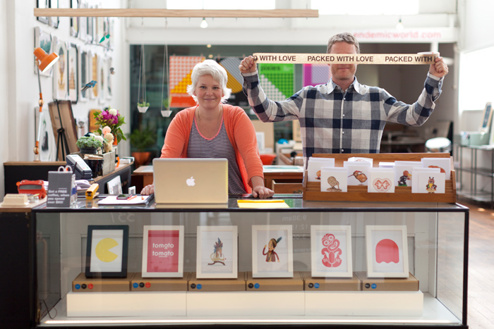 We have some exciting news! We have entered into an awesome new partnership with endemicworld who are now producing a select range of our prints in their awesome studio in New Zealand, and they look beautiful. It was important to endemicworld and us that the prints be made just like we do, and they look smashingly gorgeous! Beautiful paper, archival, giclee, and printed just like we do with Epson Ultrachrome K3 inks. The thing we love about this new arrangement is that we are reducing our carbon footprint, and we are also working with a wonderful group of people and directly supporting New Zealand in the production and availability of our prints. We are thinking locally and globally here, and it's such a wonderful thing when it works so beautifully. We are chuffed as! Here are some gorgeous photos of the endemic world pop up store, at 62 Ponsonby Rd Auckland, taken by Kristian Frires.