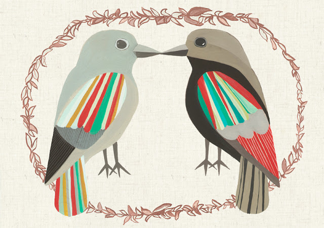 So this post is a little bit about love really. I wasn't going to go on about it, but well... there you have it. I was going to talk about our new bird print. Jason and I worked on this together. It is a print about love, and perhaps also finished in a timely fashion considering Valentine's Day is around the corner. We tried lots of ideas for a title, and kept going back to Lovebirds, so here it is - Lovebirds! Available in our online store.